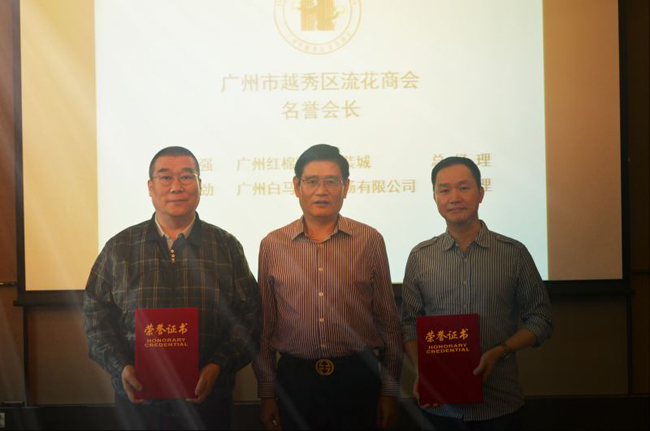 會上,流花商會鄭岳雄會長、高貴良書記在會上發(fā)表了重要講話。高書記為商會名譽(yù)會長:廣州紅棉國際時裝城卜曉強(qiáng)總經(jīng)理等頒發(fā)了名譽(yù)會長榮譽(yù)證書。