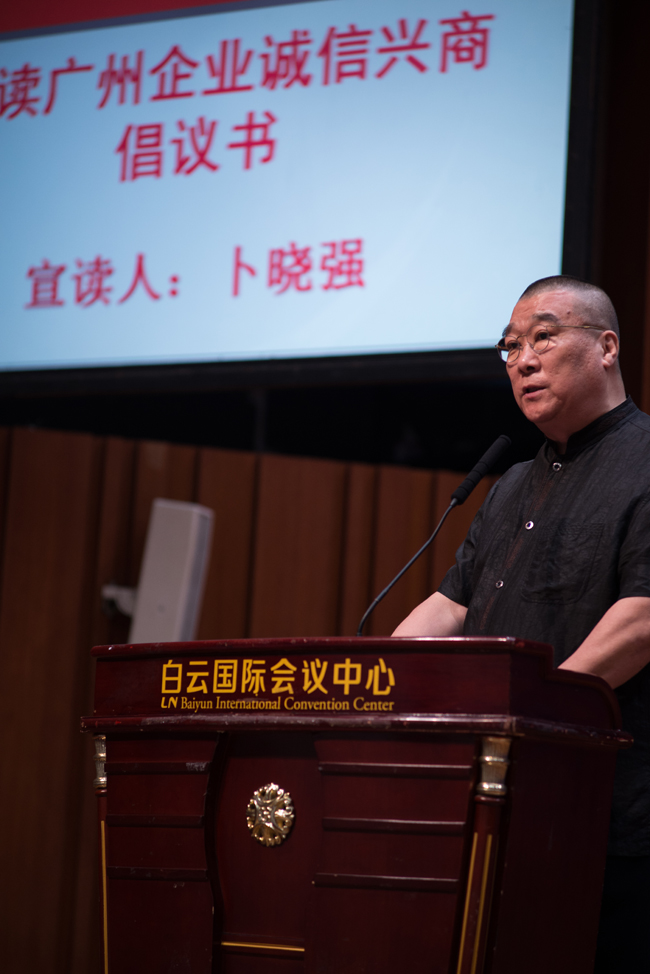 會上,廣州“三會”主席團主席卜曉強宣讀廣州企業(yè)誠信興商倡議書;廣州“三會”會長王東勝發(fā)表重要講話;廣州市原副市長劉錦湘向紅棉國際時裝城等兩家企業(yè)頒發(fā)首批“廣州市企業(yè)創(chuàng)新創(chuàng)業(yè)示范基地”榮譽牌匾。