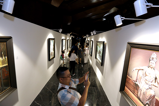 開幕式后,領導、嘉賓及觀眾步入展廳,參觀畫作。參觀中,李當岐教授逐一陳述創作體會,各位領導熱烈討論。對于李當岐教授的藝術造詣表達出高度認可。稱贊其畫作視覺獨特、手法寫實、畫風細膩。