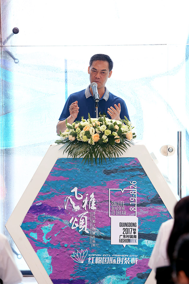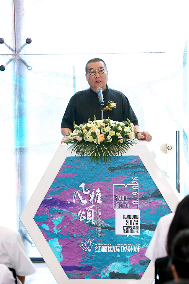 中國服裝設計師協會原主席、清華大學美術學院教授李當岐鄭重地向杜鈺洲表示感謝,老會長杜鈺洲堅持創作的精神激發了他重拾畫筆的決心,感謝為畫展獻出墨寶,寫下“風雅頌”的題字;此外,他又衷心感謝紅棉促成了本次展覽在廣東時裝周的舉行,提供了一個與行業同仁進行文化交流的機會。