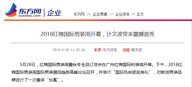 本次紅棉國際男裝周在業界引起了極大的轟動,吸引了無數人的關注,并且獲得了十余家主流媒體的報道。