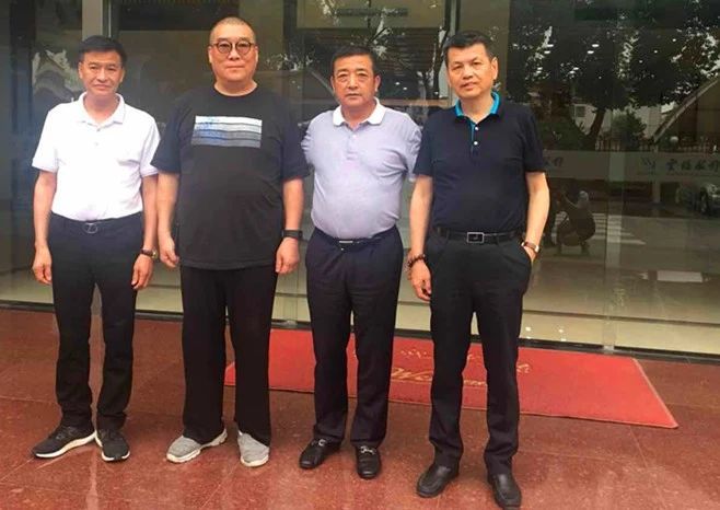 中國紡織工業(yè)企業(yè)管理協(xié)會常務副會長楊峻(右一)與江江蘇云蝠服飾股份有限公司董事長郭健(右二);福建新華源發(fā)展集團董事長陳宗立(左一);廣州市紅棉國際時裝城總經理卜曉強(左二)