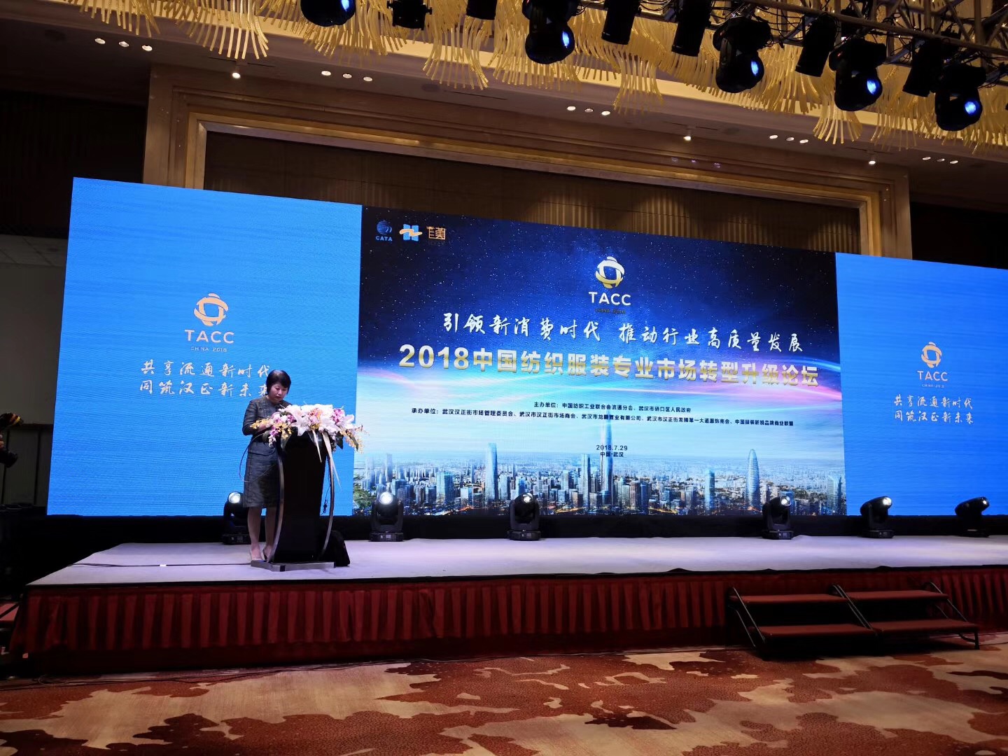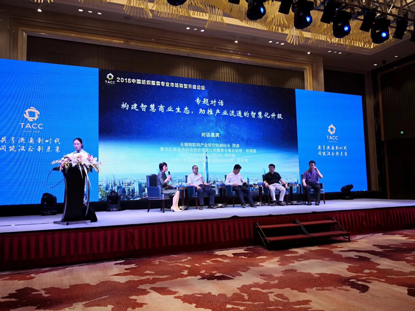 2018年7月29日上午,紅棉國際時(shí)裝城總經(jīng)理卜曉強(qiáng)參加“2018中國紡織服裝專業(yè)市場轉(zhuǎn)型升級(jí)論壇”。大會(huì)由中紡聯(lián)流通分會(huì)副會(huì)長兼秘書長張海燕主持,武漢硚口區(qū)委常委潘利國、流通分會(huì)副會(huì)長殷強(qiáng)、國家工信部消費(fèi)品司紡織處長曹庭瑞分別致辭,武漢龍騰公司顧問袁紅發(fā)言。中國社會(huì)科學(xué)院教授、研究院、博士生導(dǎo)師宋則和廣東財(cái)經(jīng)大學(xué)流通經(jīng)濟(jì)研究所長王先慶教授分別就“新消費(fèi)環(huán)境下,現(xiàn)代商貿(mào)流通體系的新發(fā)展與變革”和“紡織服裝專業(yè)市場在城市經(jīng)濟(jì)中的新角色”為主題,做了精彩演講,演講過程中,獲得陣陣掌聲。最后就“構(gòu)筑智慧商業(yè)生態(tài),助推產(chǎn)業(yè)流通的智慧化升級(jí)”與產(chǎn)業(yè)園及市場代表進(jìn)行了對(duì)話環(huán)節(jié)。
