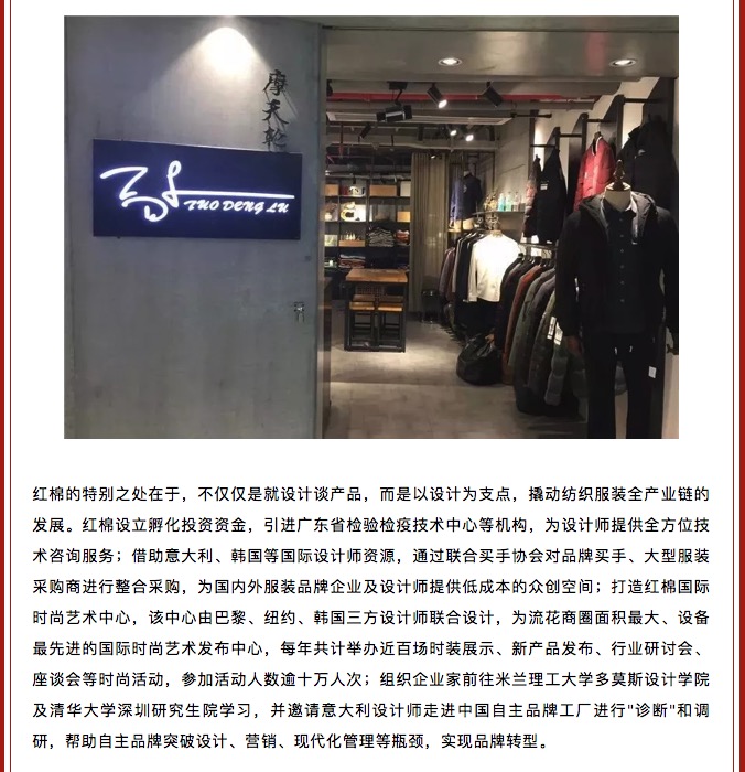 | 上一主題:快訊 | 武漢紡織大學服裝學院熊院長到紅棉參觀指導工作。 | 下一主題:干貨 | 一群意大利人聚在紅棉,決定要玩轉中國時尚電商…. |