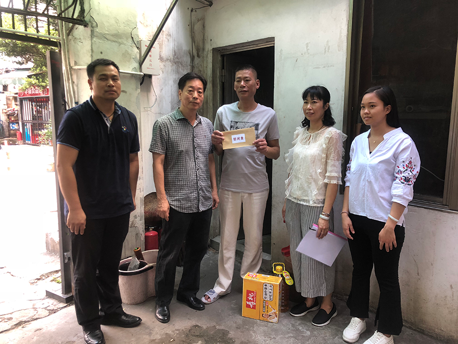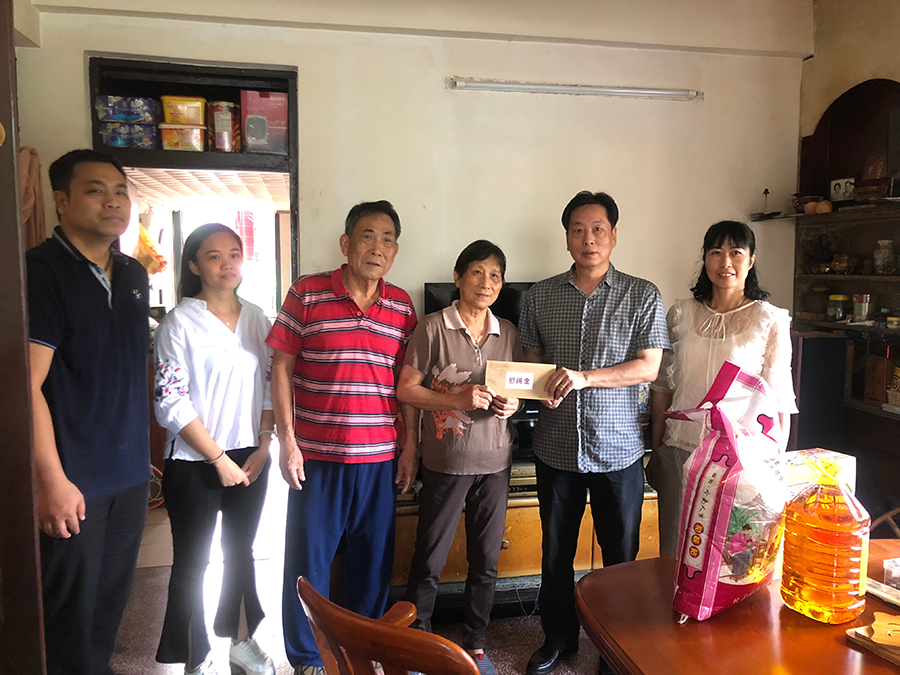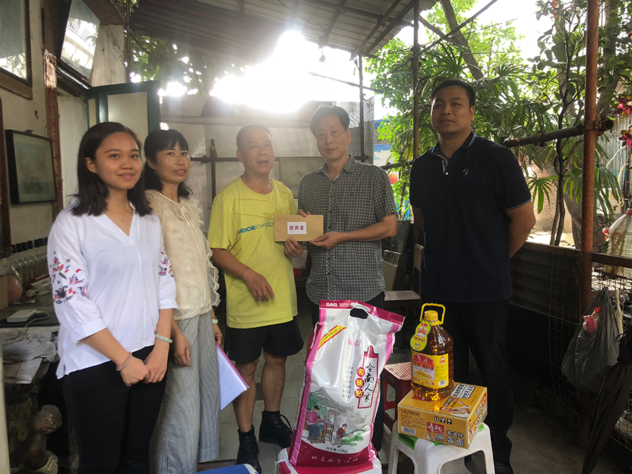 “真是太感謝了,又送米又送油,去的心里真是比吃了蜜還甜!”家住站西路的李老高興得合不攏嘴。值2018年國(guó)慶中秋佳節(jié)來(lái)臨之際,為了讓貧困家庭感受到黨、政府及社會(huì)對(duì)他們的關(guān)愛(ài),過(guò)上一個(gè)安樂(lè)祥和的傳統(tǒng)佳節(jié),9月19日,由紅棉國(guó)際時(shí)裝城副總經(jīng)理盧浩江帶領(lǐng)的慰問(wèn)小組來(lái)到火車站社區(qū)站西大院,為15名貧困家庭送去慰問(wèn)品及慰問(wèn)金,為他們送去節(jié)日的問(wèn)候與關(guān)懷,使他們感受到社會(huì)大家庭的溫暖。
