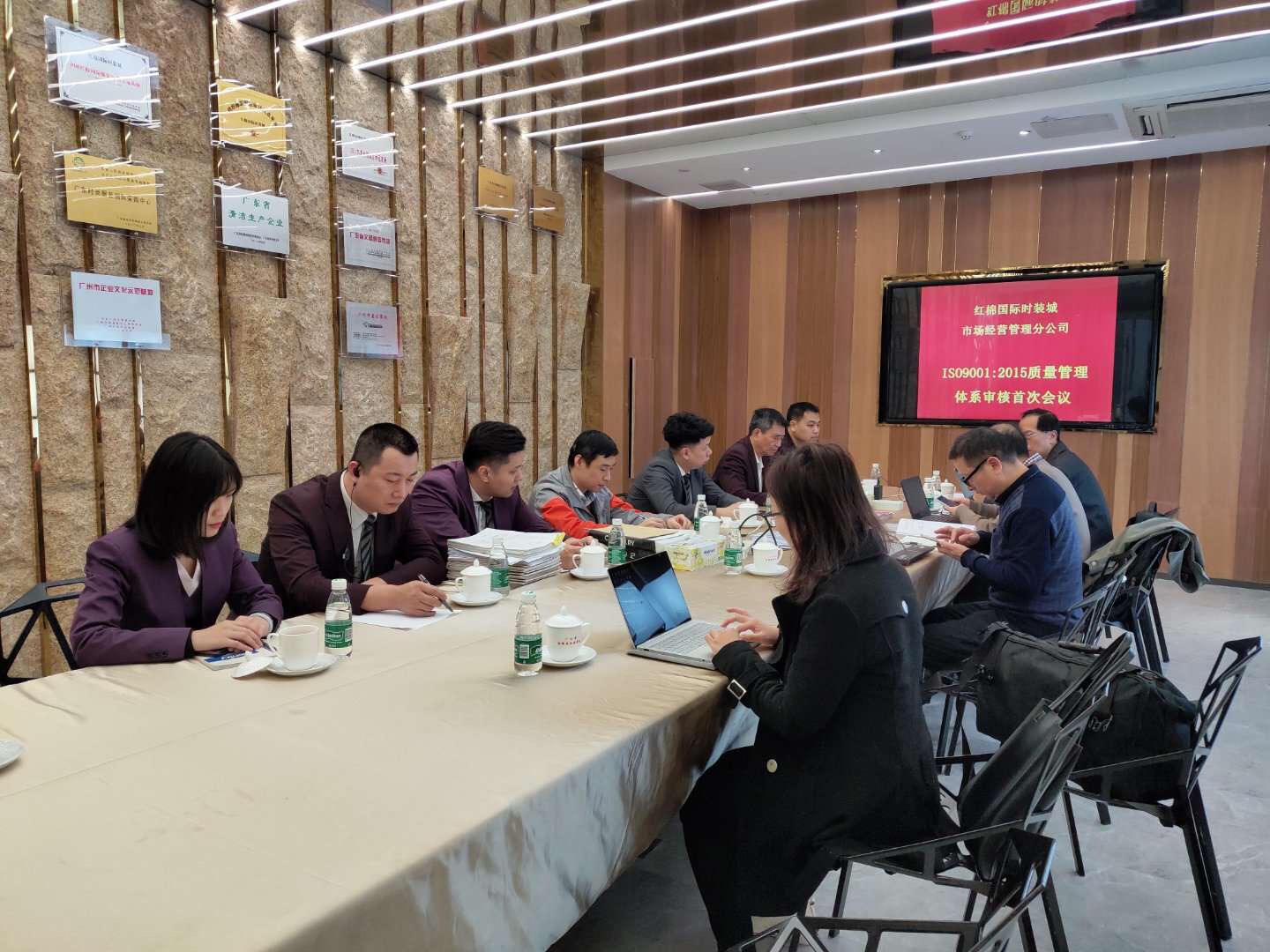 上午,紅棉國際時裝城ⅠSO9001:2015質量管理體系年審首次會議正式開始。這是繼紅棉保安服務有限公司后的又一認證工作。