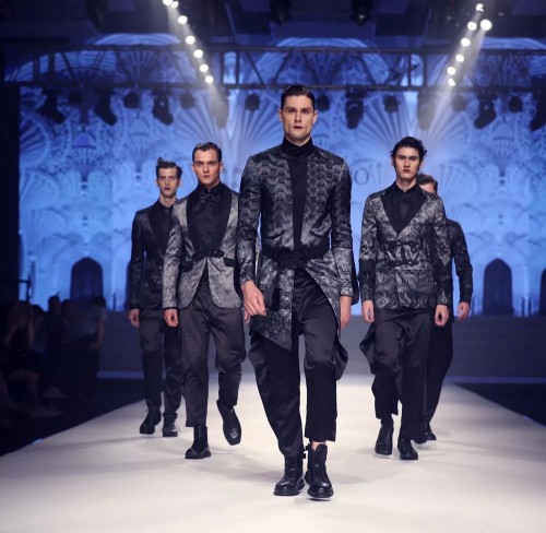隨后,中外模特展示了國際知名時(shí)裝設(shè)計(jì)師、中國服裝設(shè)計(jì)最高獎(jiǎng)項(xiàng)金頂獎(jiǎng)獲得者—計(jì)文波百套華服作品,與會嘉賓和客商共同欣賞了一場精彩紛呈的時(shí)尚盛宴。