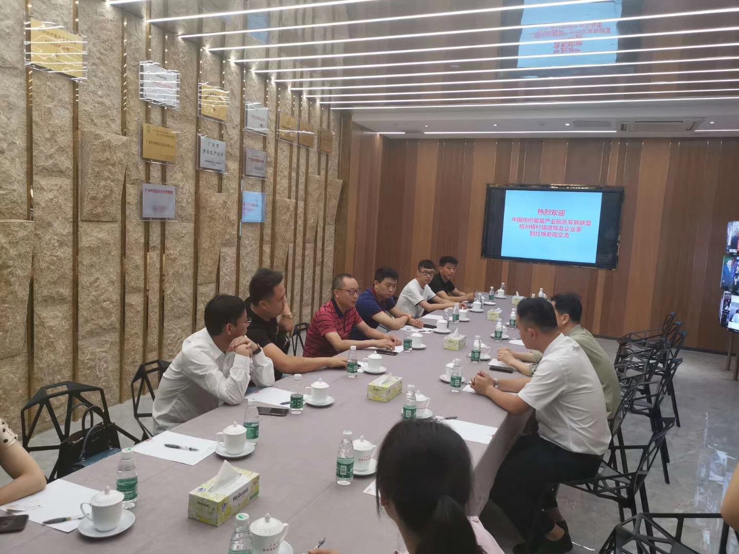 今天上午,浙江桐廬橫村鎮政府的書記、鎮長及商會,企業家一行在紅棉參觀交流。