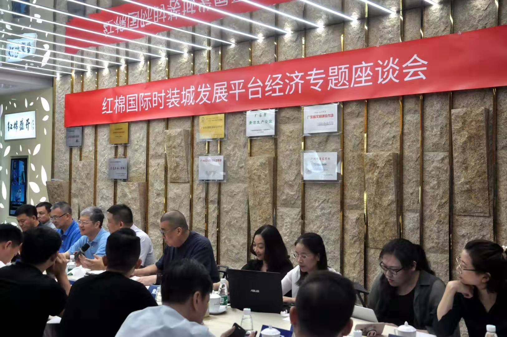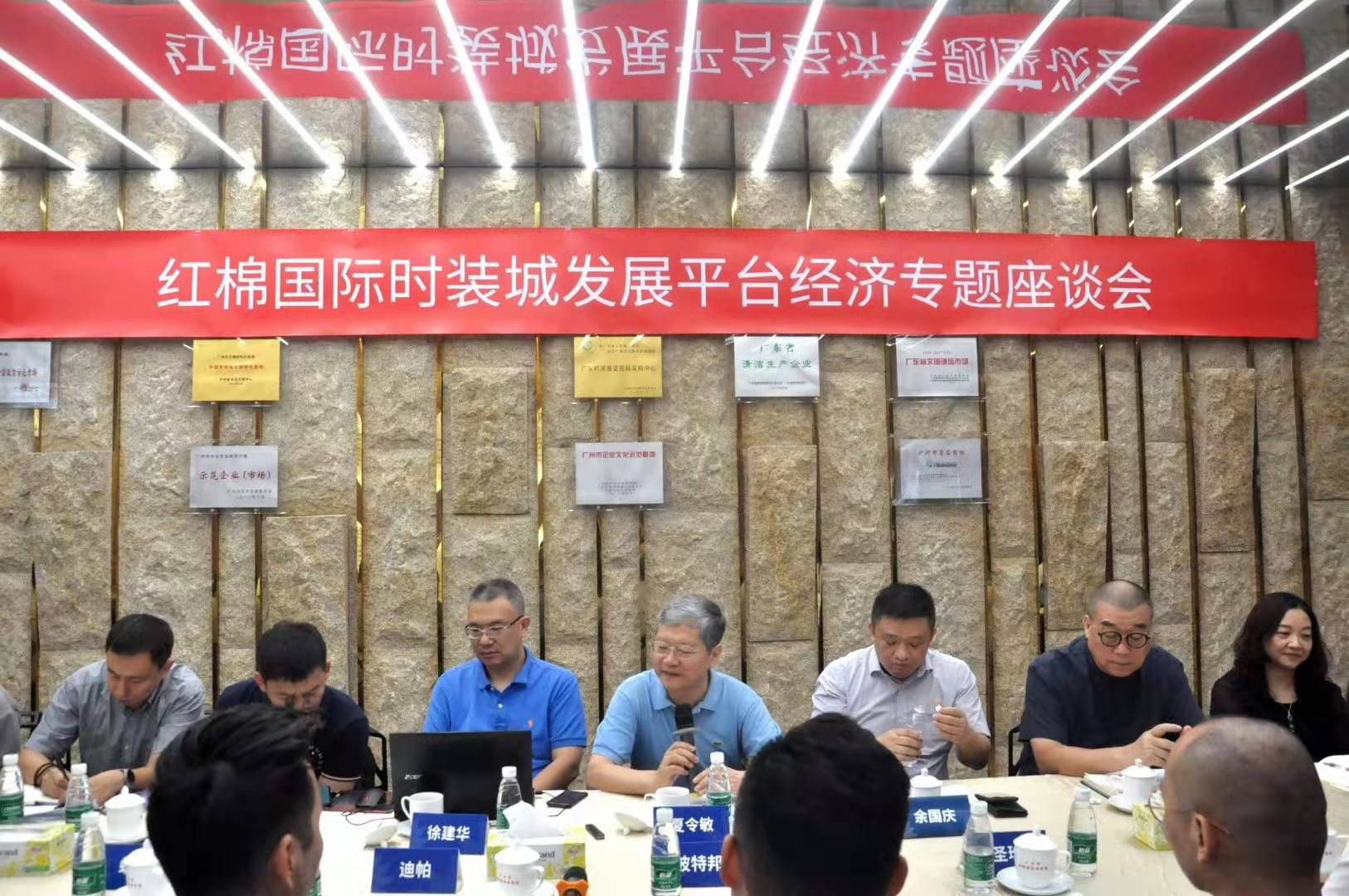 今天上午、中國紡織工業聯合會副會長、流通分會會長夏令敏、分會副會長徐建華一行,在紅棉國際時尚發布中心,召開了“紅棉國際時裝城發展平臺經濟專題座談會”。區商務局余副局長、廣州國際輕紡城黃總、富力環貿港王副總、及紅棉12戶商家代表,參加了座談會。